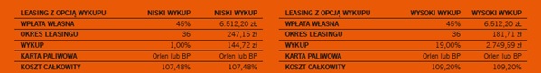 Przykładowa kalkulacja leasingu dla przedsiębiorców oferowanego przez Santander Consumer Multirent Spółka z o.o. z siedzibą we Wrocławiu.